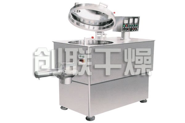 粉體物料與粘合劑在圓筒形容器中由底部混合漿充分混合成濕潤軟材,然后由側置的高速粉碎槳切割成均勻的濕顆粒。
