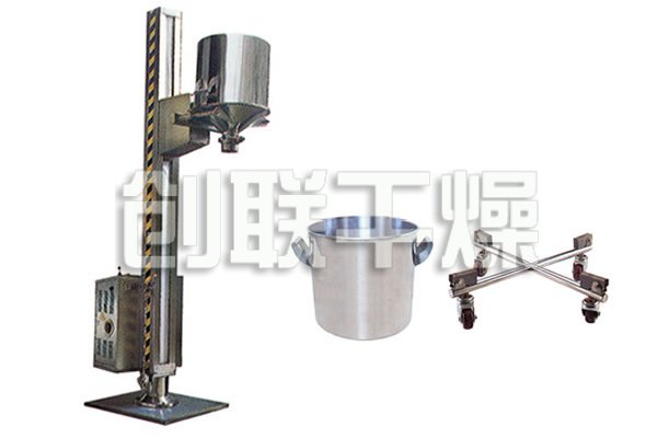 TJG 系列固定提升加料機由兩部分組成,即提升機及底座。提升機由機架、液壓提升系統及料門(mén)翻轉機構組成。工作時(shí),先將提升機的料門(mén)與料桶扣合,啟動(dòng)提升操作桿,料門(mén)與料桶一起上升,啟動(dòng)翻轉操作桿,料桶即可番轉180度,呈底桶向上姿態(tài)并移動(dòng)到所需位置,利用料門(mén)上出料蝶閥,可很容易將物料加入所需的工藝設備中。